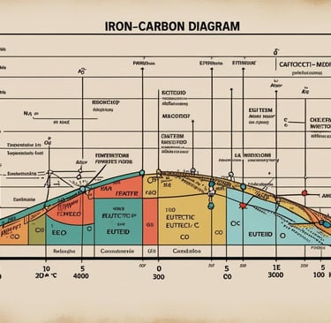 O diagrama ferro-carbono é um gráfico que representa as fases do ferro e suas ligas com o carbono em diferentes temperaturas e composições de carbono. Este diagrama é crucial para entender como o aço e outros ferros fundidos se comportam sob diversas condições térmicas e de composição.